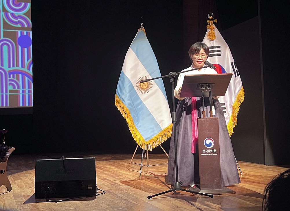 El acto central, realizado en la Sala Argentina, comenzó con las palabras de la nueva directora del Centro Cultural Coreano, responsable de la organización de estas actividades: la cálida Misuk Kim rescató las propiedades del kimchi y la relación cada vez más estrecha entre los dos países. También el embajador Yongsoo Lee destacó este aspecto y, con simpatía, hizo un concurso entre los asistentes que subieron al escenario para responder a una pregunta y les entregó premios.